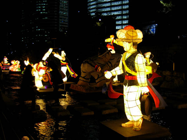 Here are a series of Korean performers and acrobats. There is a pair of men engaged in ssireum wrestling, but for some reason the lanterns were out so you can’t see them too well here.