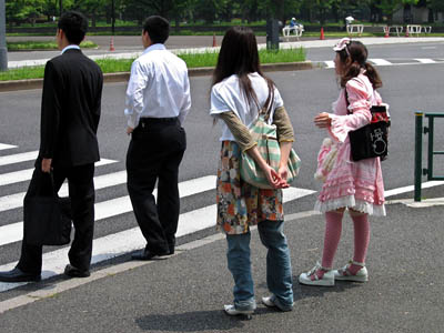 These girls walked by me when I was taking the previous photo, and I couldn’t help taking a picture of them as they stopped at the crosswalk to wait for the light. You would never get away with an outfit like that (the pink one, I mean) in Seoul, but here it isn’t too rare to see a girl dressed up like a... well, like a doll, I guess.