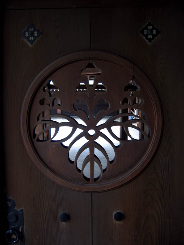 A cut-out pattern in one of the doors leading to the Meiji Shrine.