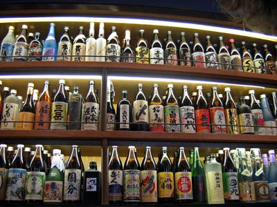 From the Imperial Palace we walked to Ginza, and by the time we got there we were very hungry. We stopped in a restaurant that specialized in food from the Kagoshima region, in particular “black pork” (not sure why it’s called that... maybe the pigs are black). This was the selection of alcohol right behind us when we sat down. We were more interested in the food, of course, but it was so colorful I couldn’t help taking a picture.