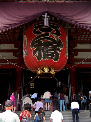 This huge red lantern hangs in front of the main temple hall. The second character on the lantern means “bridge,” but I can’t make out the top character.